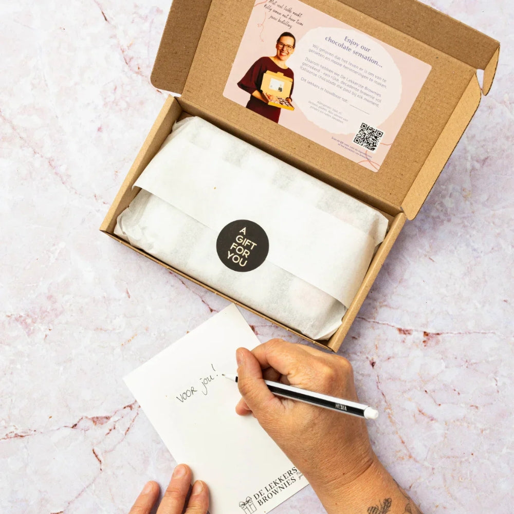 De reacties? Die zeggen genoeg. Klanten vertellen ons dagelijks hoe bijzonder het moment was dat hun brownie op de mat viel. Dat de ontvanger ze zich gezien voelde. Of dat ze precies dat ene zetje kregen om even stil te staan.