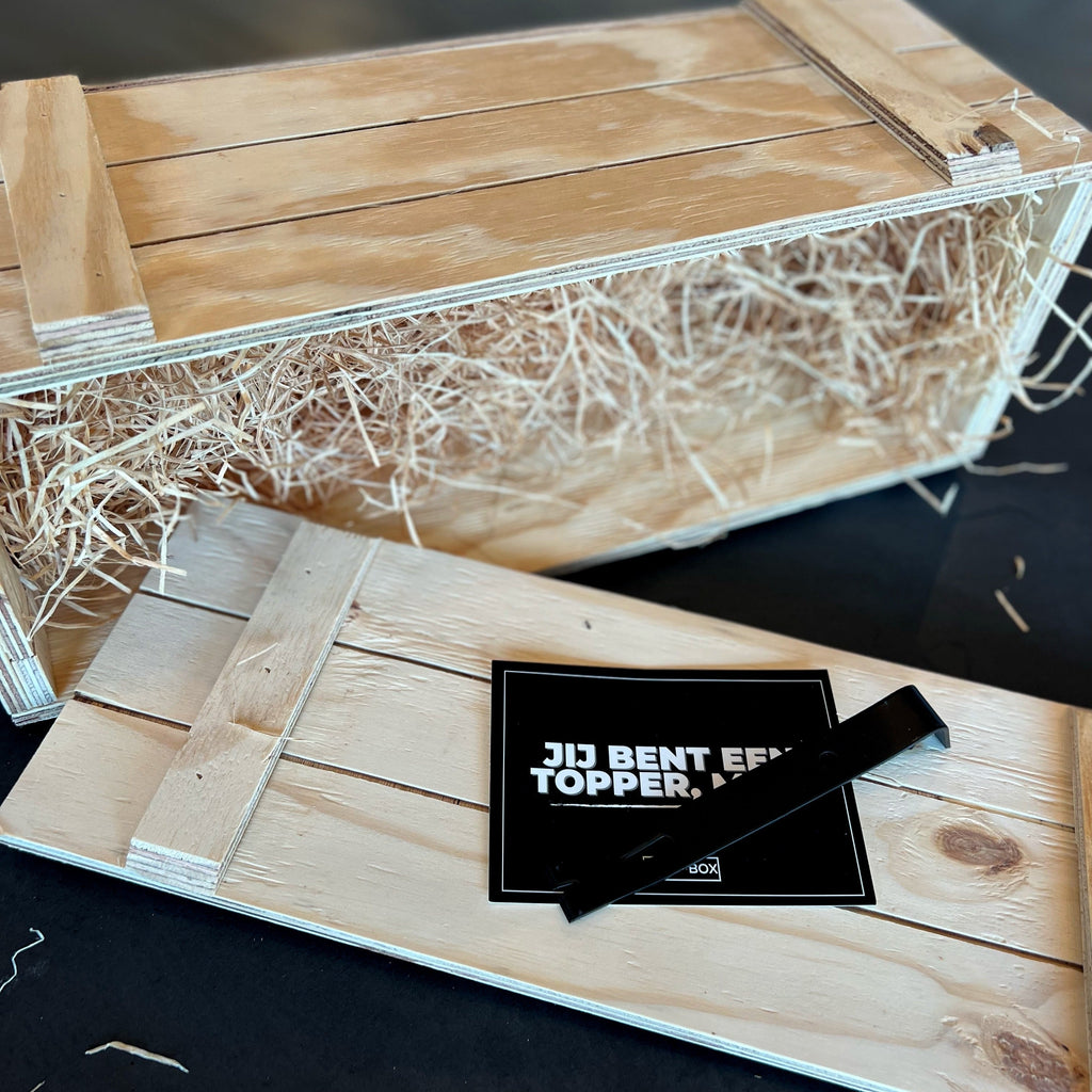 Een Breekbox is een houten cadeaubox die opengebroken dient te worden met het meegeleverde breekijzer. De deksel van de Breekbox zit stevig vast, waardoor het openbreken vaak gepaard gaat met pijn en moeite. Maar eenmaal opengebroken ontstaat er een prachtig moment van ontlading en totale bevrediging. De box is eindelijk open en nu is de beloning hetgeen wat er in de box zit.