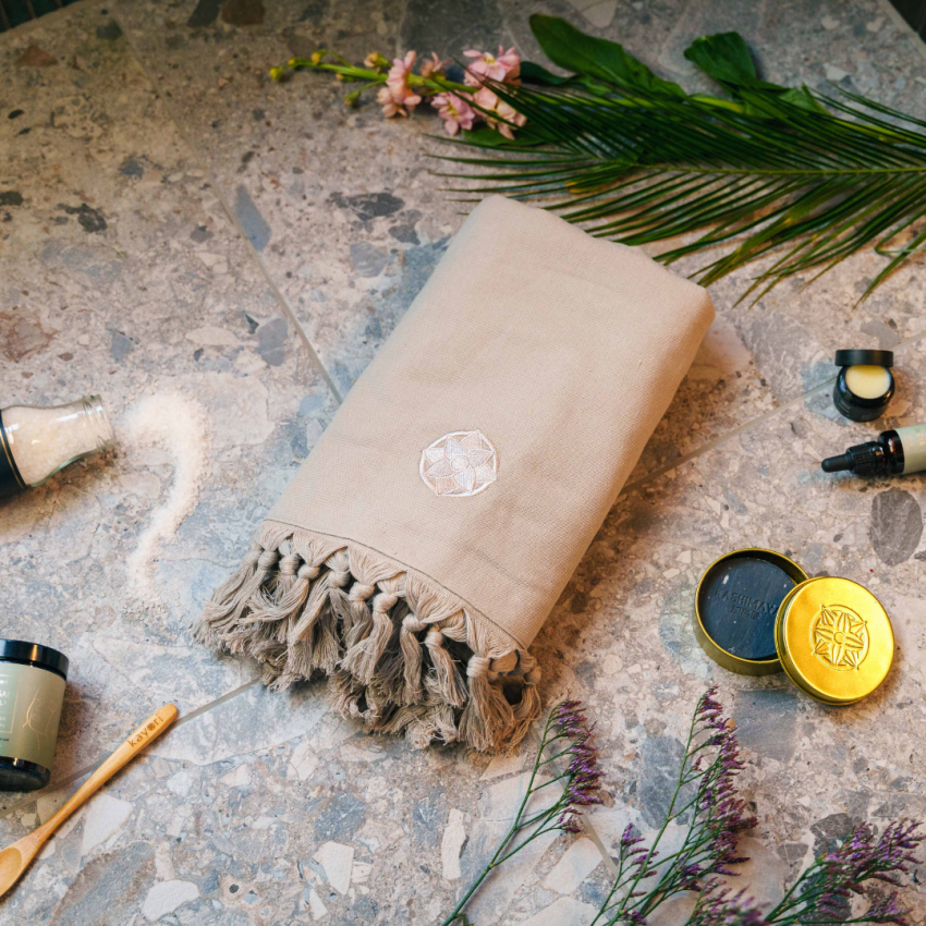 Deze prachtige doek is vervaardigd uit zacht katoen en afgewerkt met speelse franjes. Het subtiel geborduurde Kayori-logo geeft een elegante touch. Ideaal voor een bezoek aan de sauna of een dagje strand, maar ook perfect na het douchen of zwemmen dankzij de uitstekende vochtabsorberende eigenschappen van katoen.