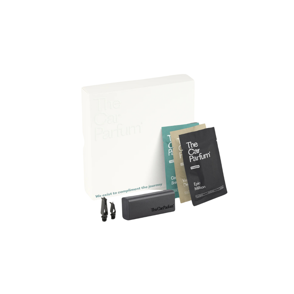 Deze set bevat één CarBar houder, verkrijgbaar in zwart of off white, en één navulling van elk van onze drie exclusieve geuren: Epic Million, Vanilla Dreams, en Cotton Breeze. Geniet van een gevarieerde en luxe geurbeleving die elke rit speciaal maakt.