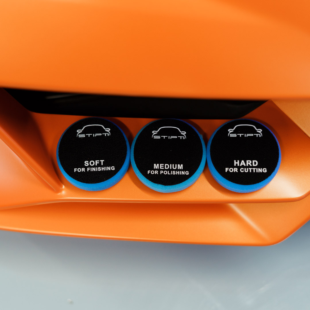 De Stipt Mini Polish Pad Set bestaat uit de Stipt Mini Polish Pad Hard voor het grove polijstwerk, Stipt Mini Polish Pad Medium voor het normale polijstwerk en de Stipt Mini Polish Pad Soft voor het na polijsten.