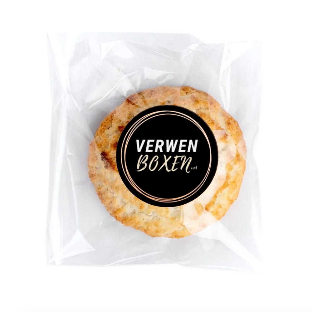 Bij ons kun je gemakkelijk een heerlijke kokosmakroon bestellen, dagelijks vers gebakken en speciaal per stuk verpakt en voorzien van eigen logo of klein stukje tekst. Deze koeken zijn perfect geschikt om uit te delen op kantoor, de afdeling, op school, tijdens een beurs, congres of open dag, of gewoon als een smakelijk bedankje. Onze kokosmakronen zijn ambachtelijk gemaakt met de beste ingrediënten, waardoor ze een heerlijke traktatie vormen voor je collega's, klanten, relaties of gasten. Personaliseer ze met je eigen logo om een blijvende indruk te maken en geniet van het gemak van individuele verpakkingen.